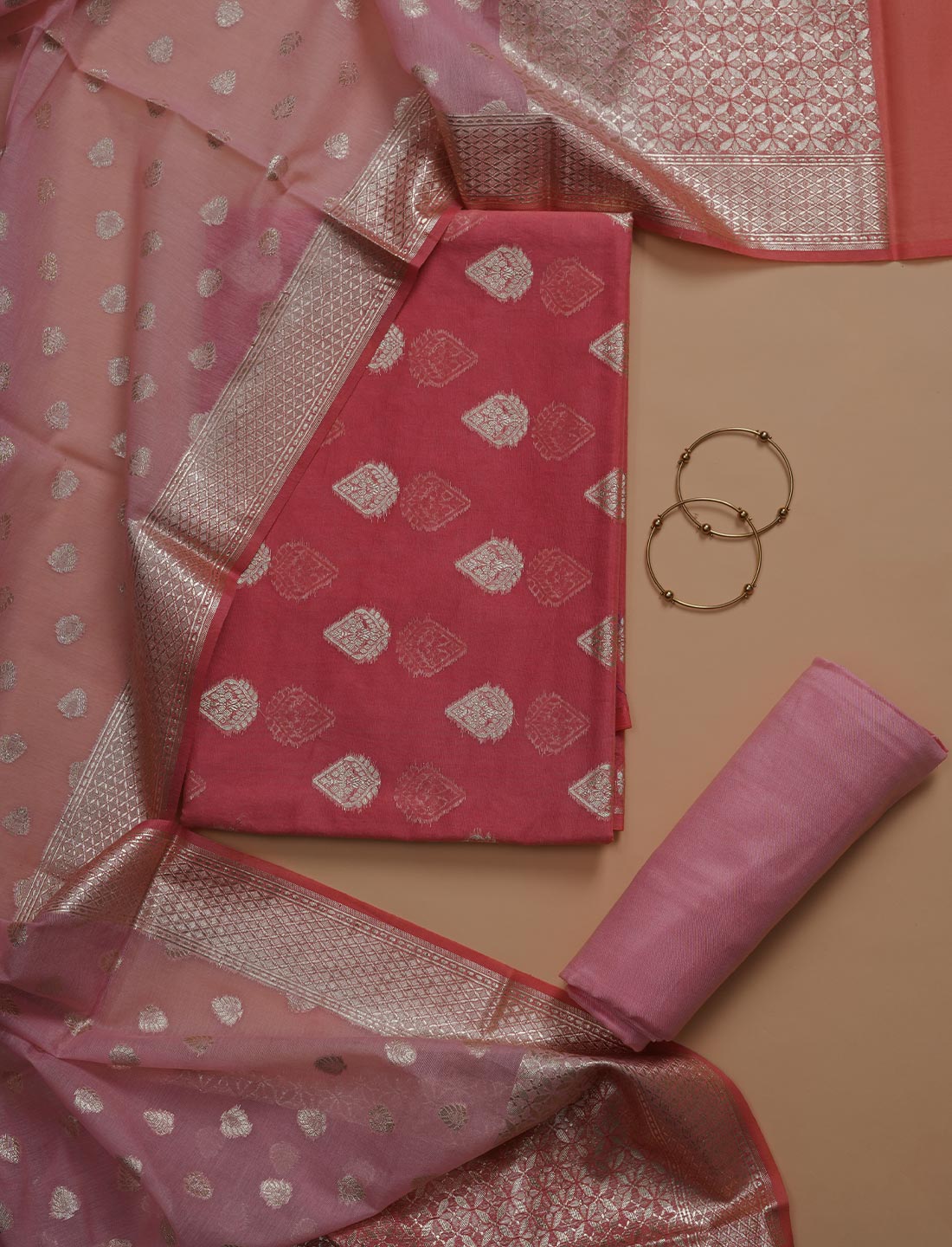 Chanderi Cotton silk suit with contrast dupatta unstitched.