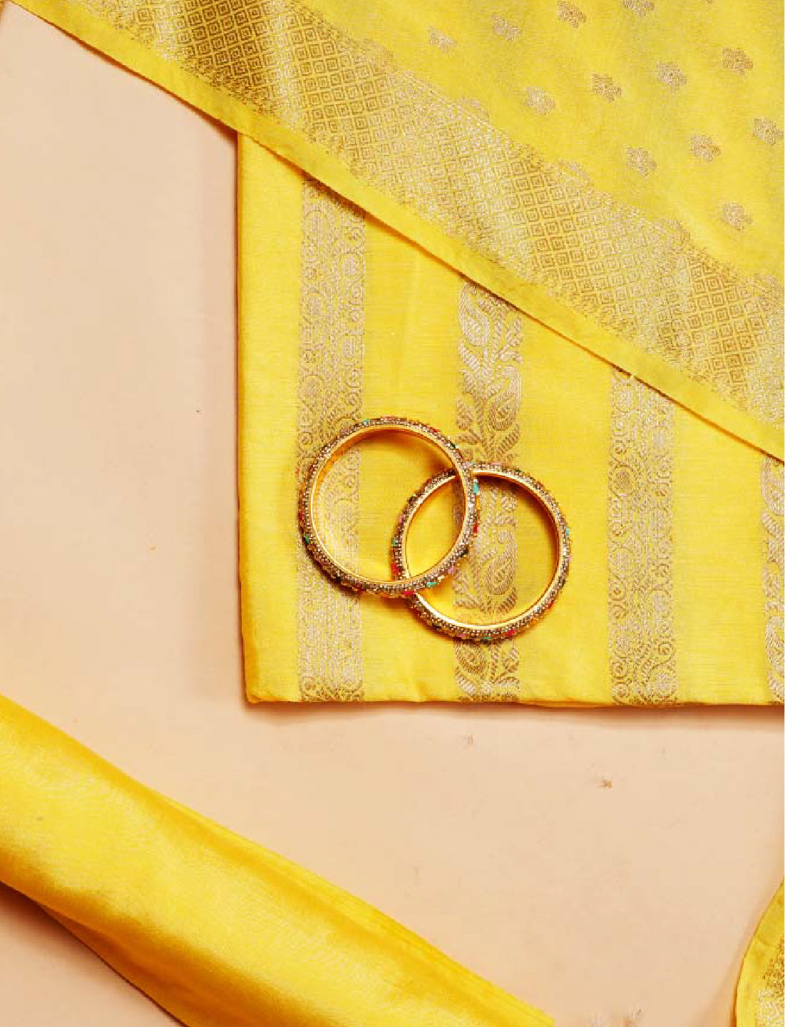 Unstitched Cotton silk suit with heavy banarasi duppatta.