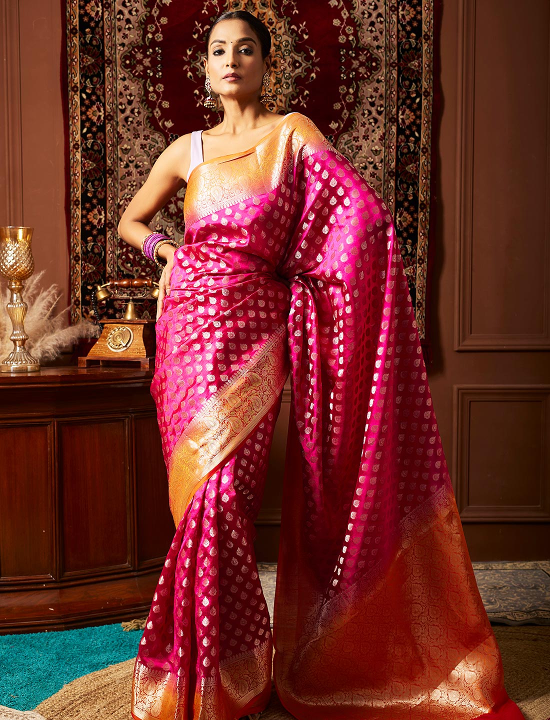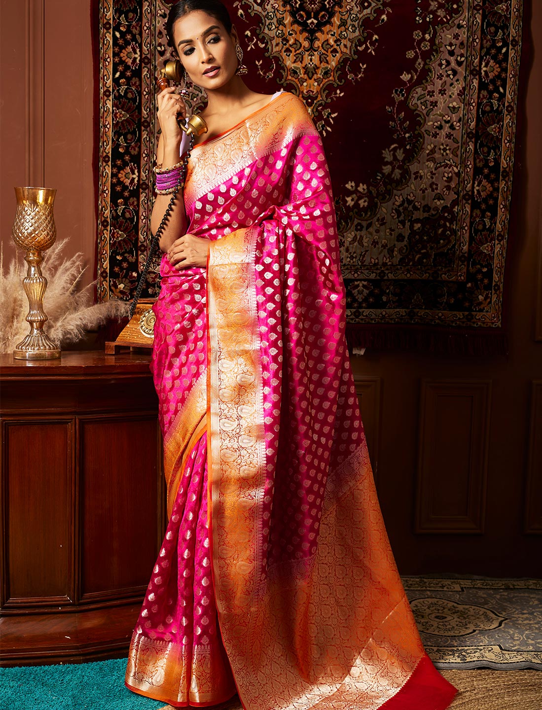 Pure Silk saree Simple yet Elegant Pure silk sarees with zari nilambari floral motifs all over drape and Rich Contrast borders with stunning combinations.