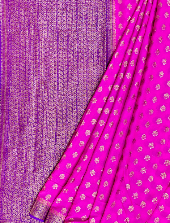 Pure khaddi chiffon saree with neem zariand resham work all over drape.?Chiffon is an elegant, sheer fabric with a soft beautiful drape and crepe-like texture known for its versatility and lightweight nature. A translucent fabric ,easy to drape makes it a popular choice among women specially in sweltering summers. This lightweight airy textured saree inject modern chic while retaining the elegance of traditional attire.