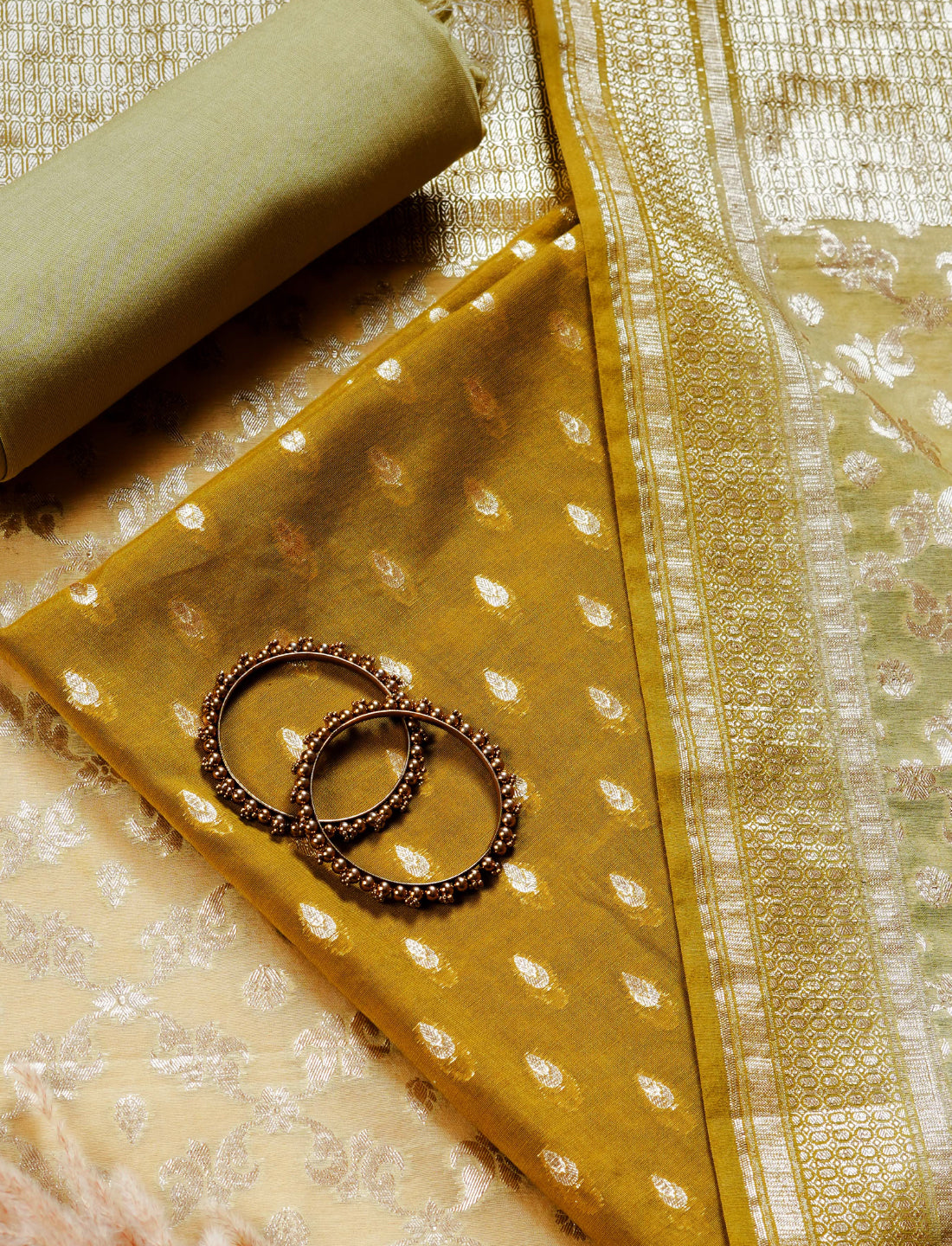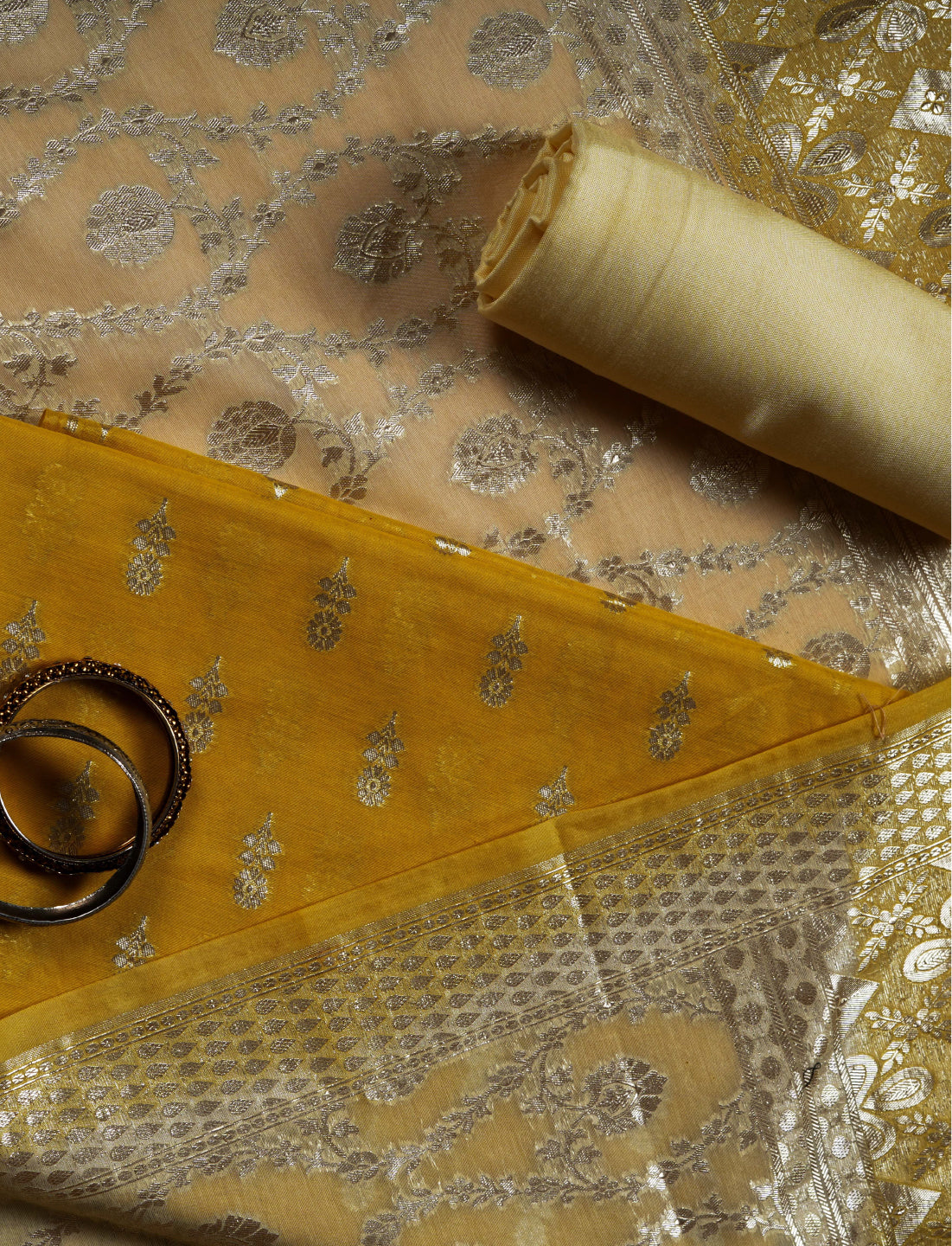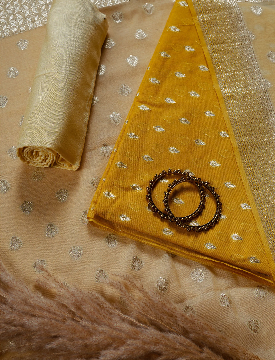 Unstitched Linen Cotton suit with heavy jaal duppatta.