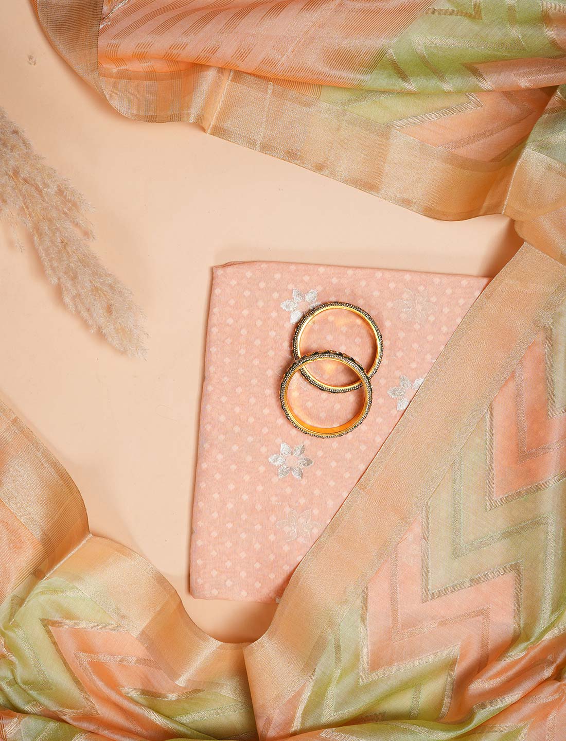 Cotton silk suit with Jaal dupatta unstitched.