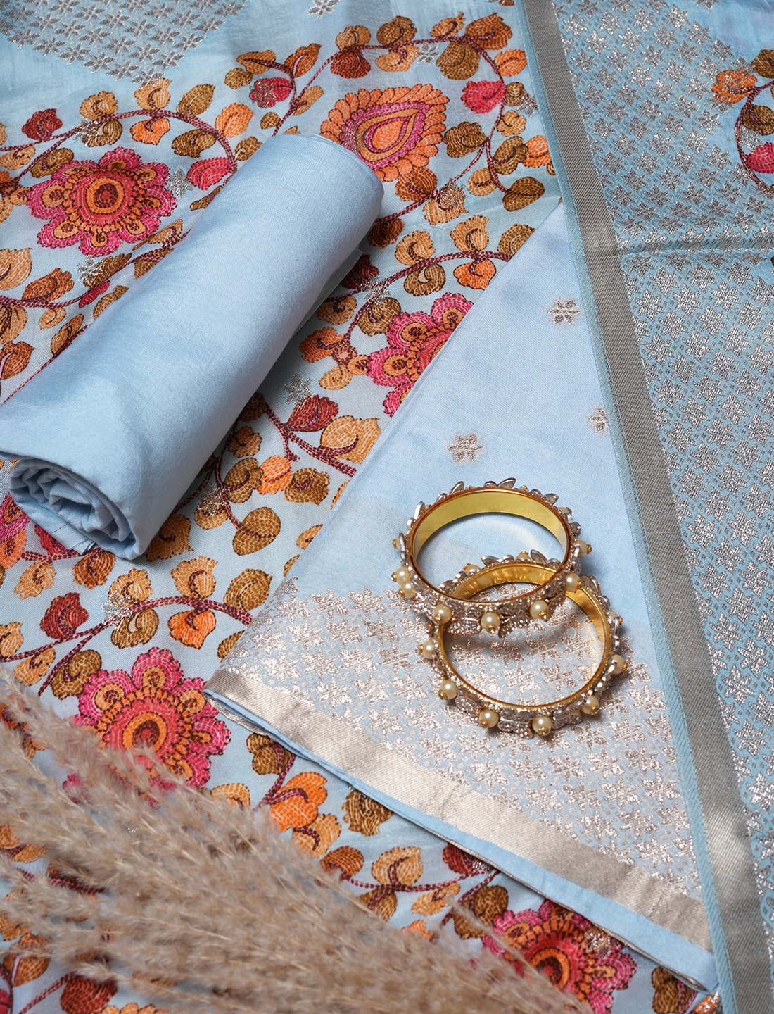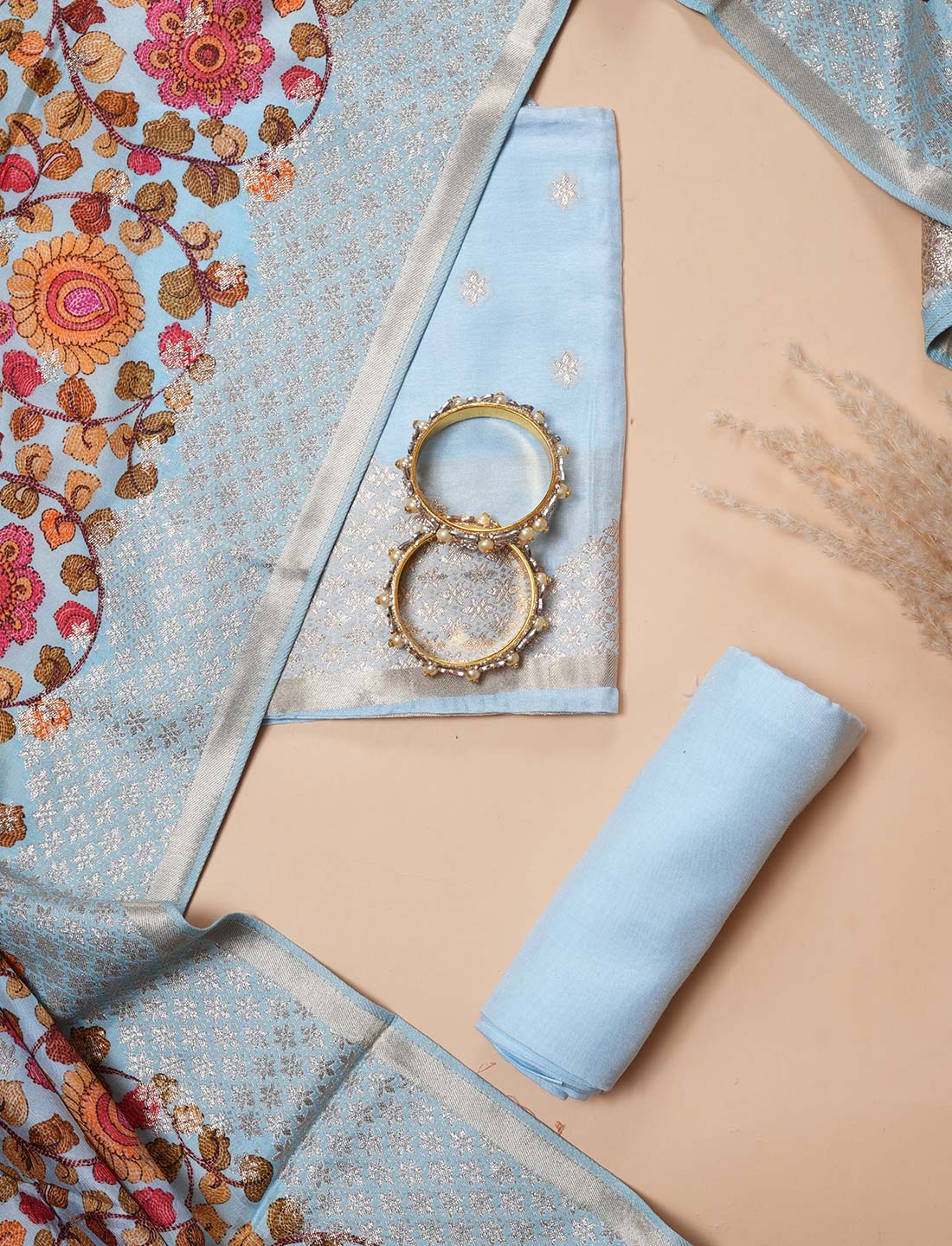 Cotton silk suit with digital print zari work dupatta unstitched.
