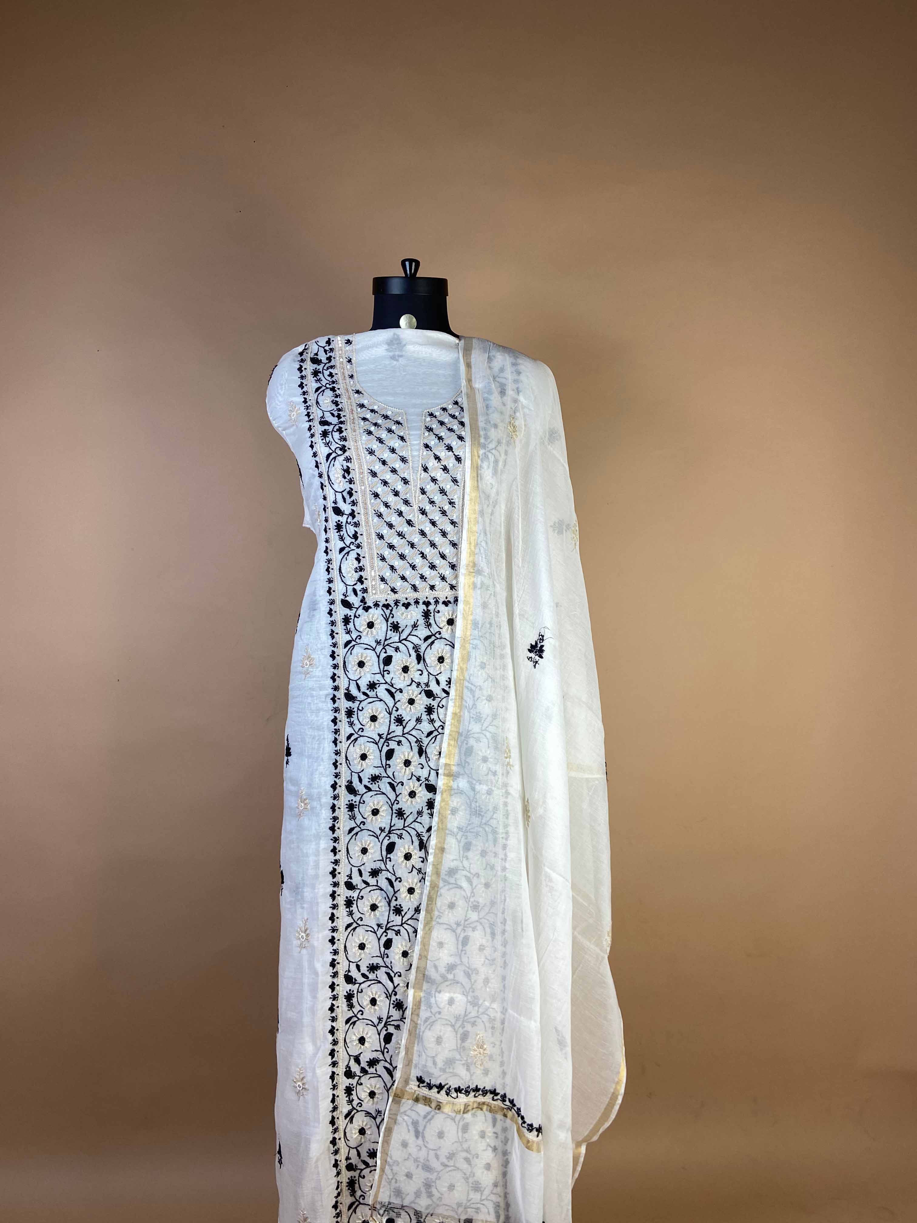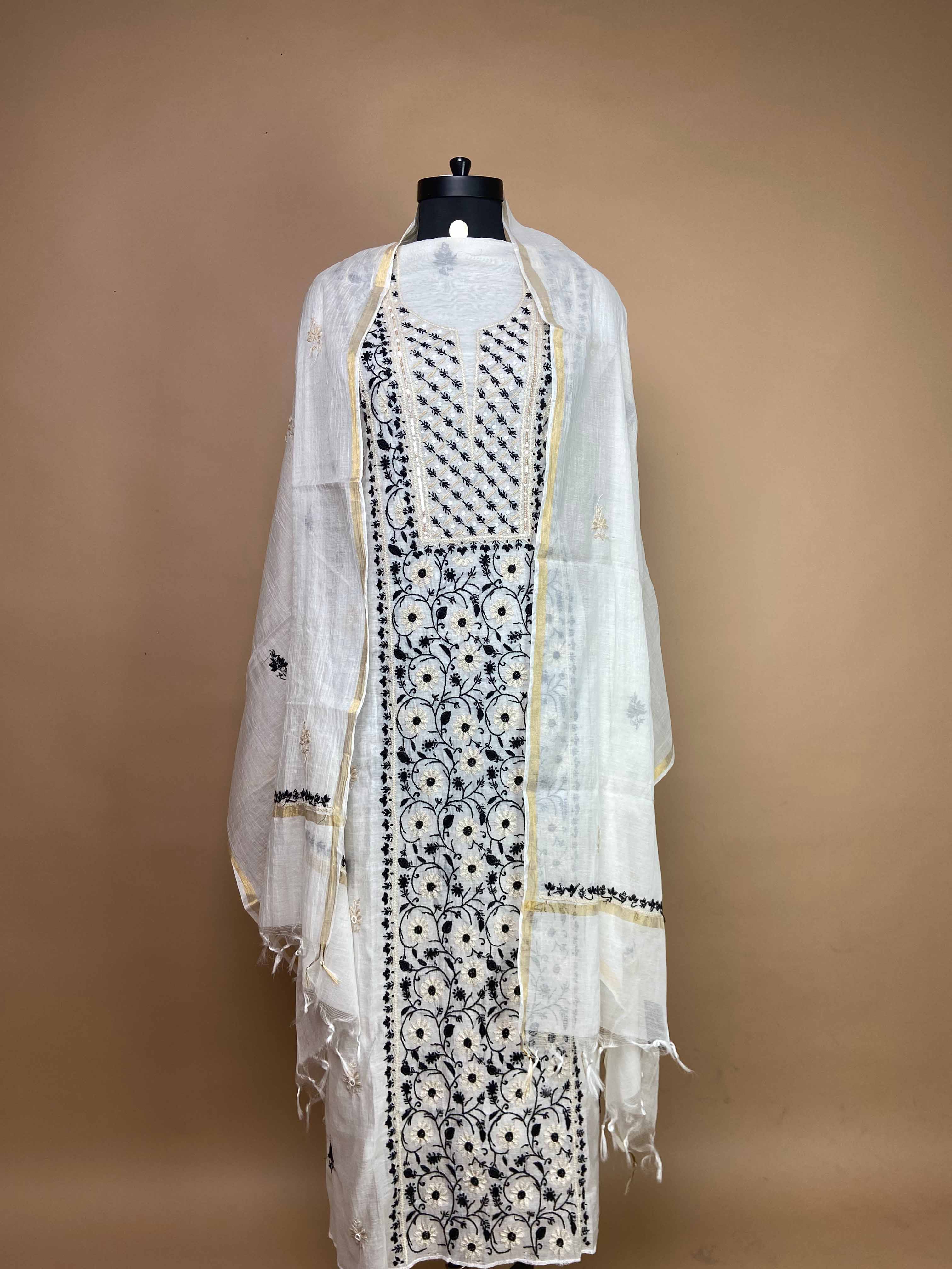 Pure Mulchanderi Chikankari Suit with Exquisite Bead Work – A true testament to handcrafted elegance, this Pure Mulchanderi suit is adorned with intricate Chikankari embroidery, enhanced by exquisite multi-colored beadwork and shimmering sequins. The kurta and dupatta feature fine detailing, adding a touch of sophistication and charm. This 2-piece unstitched set (Kurta & Dupatta) is perfect for those who appreciate heritage craftsmanship with a hint of sparkle, making it an ideal choice for festive and special occasions.