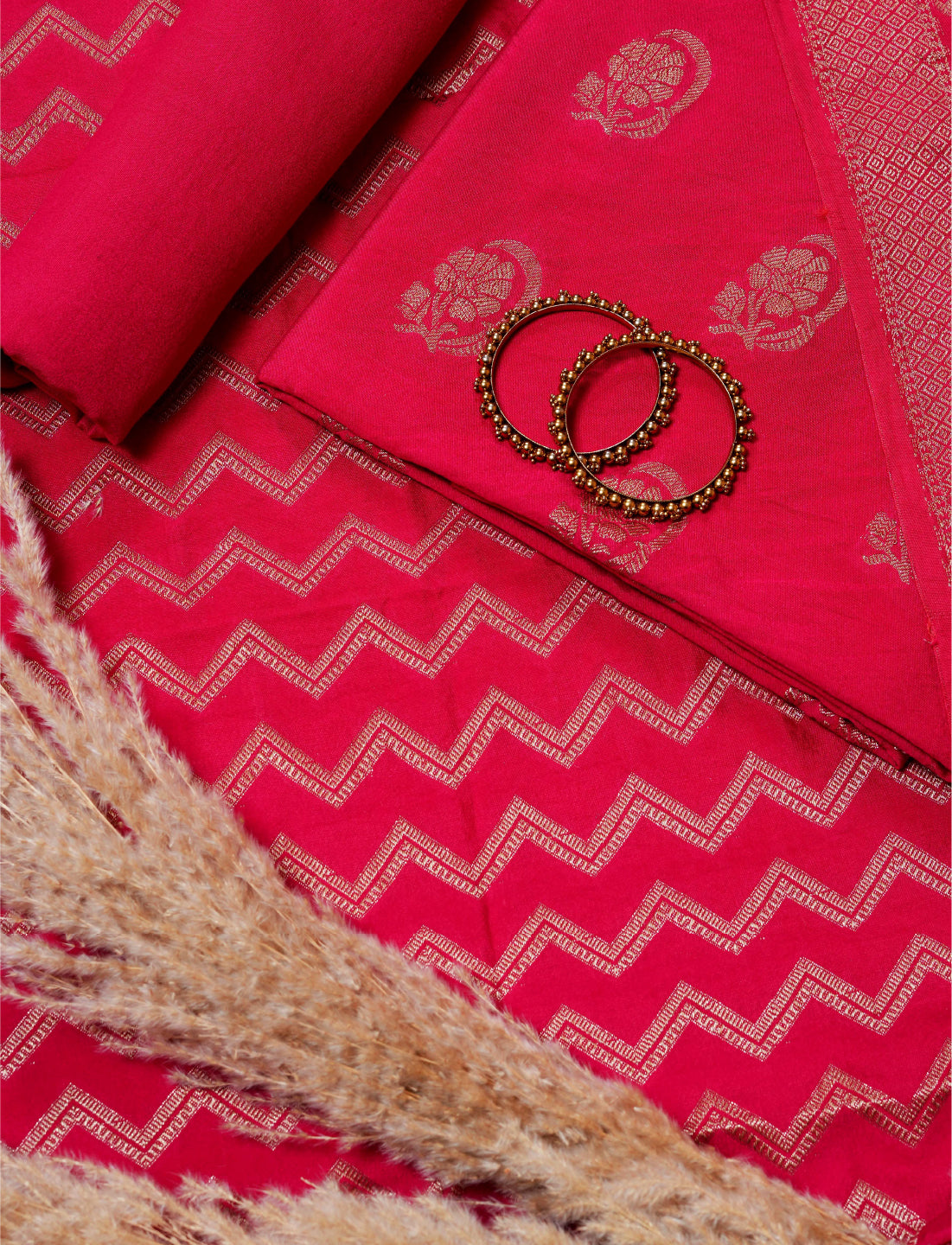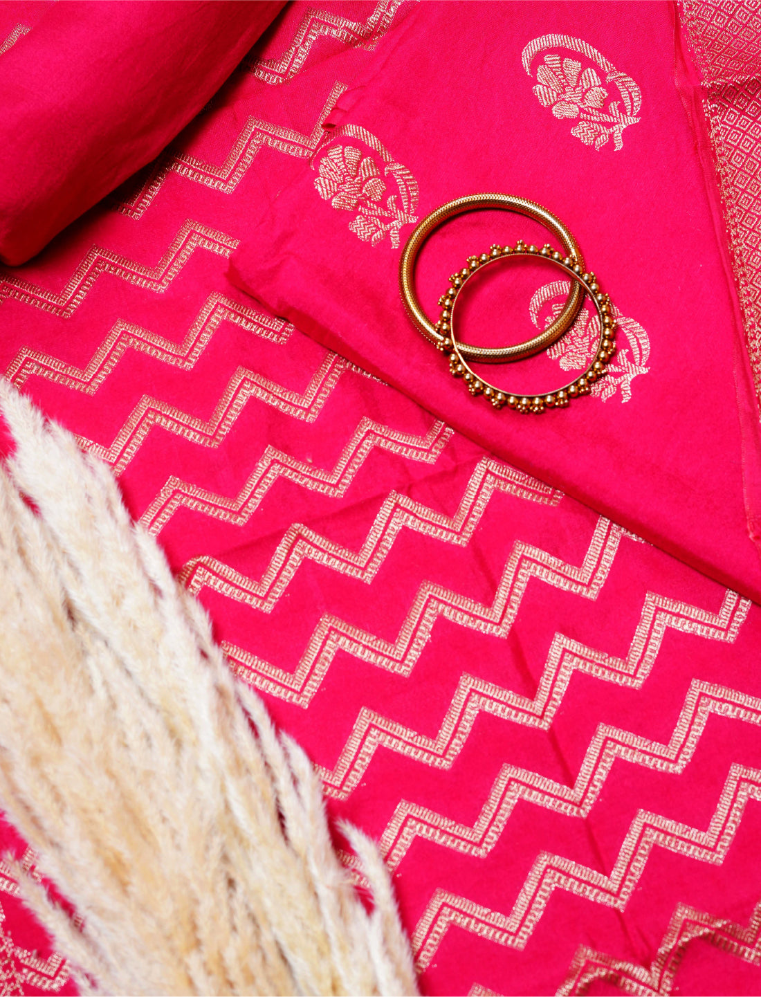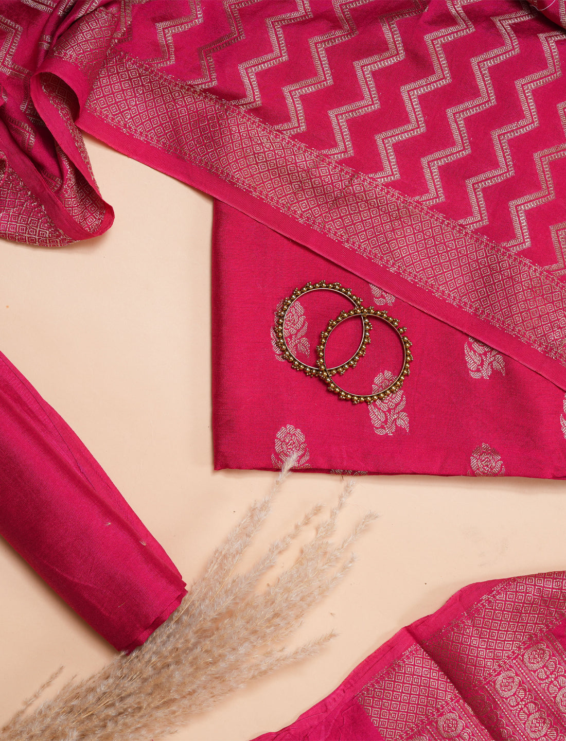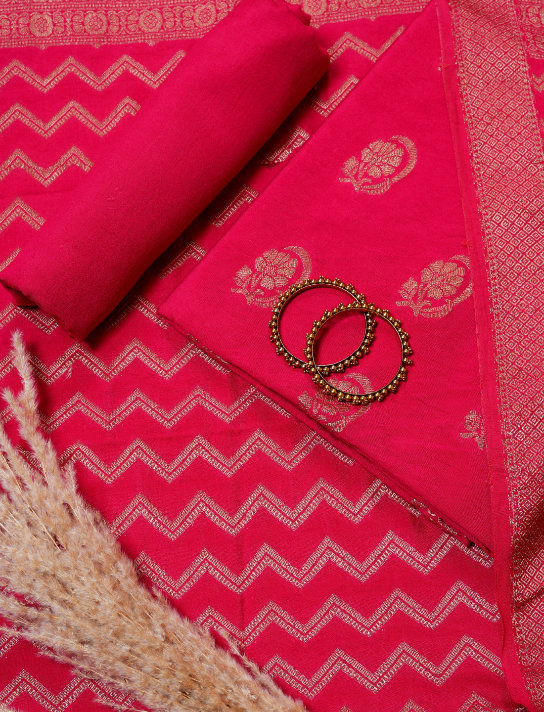 Unstitched Crepe silk suit with Lehariya dupattas.