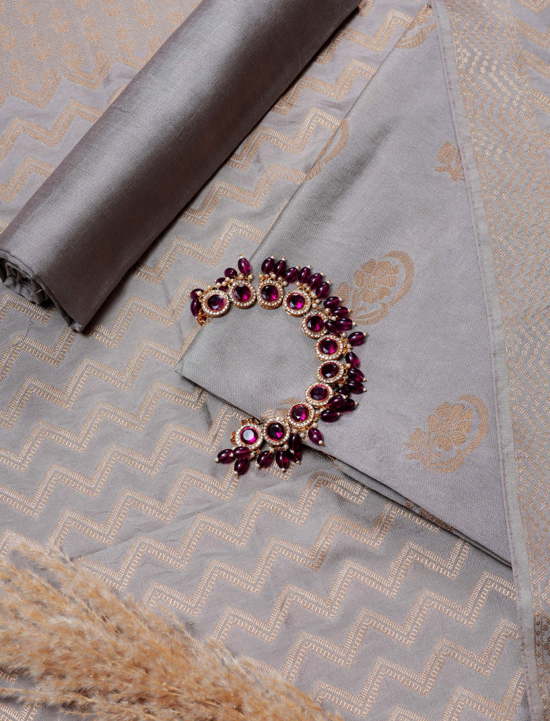 Unstitched Crepe silk suit with Lehariya dupattas.